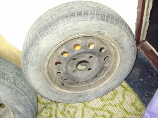 uite si roata de rezerva de care spuneam ca a stat la mine intr-o balta, in portbagaj, si cifrele pe care le cautam pe jenti. numai bine!
