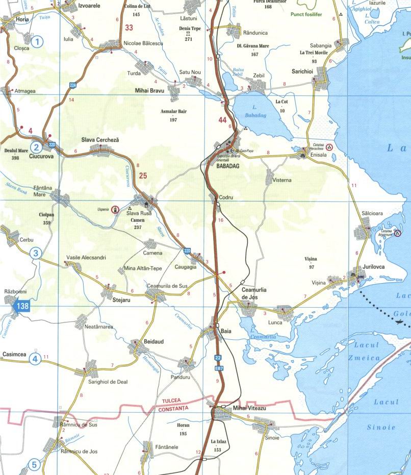 2 cantoane e intersectia unde se duc urmatoarele drumuri: dreapta=jurilovca, inainte=babadag/tulcea, stanga=caugagia, slavele, ciucurova.