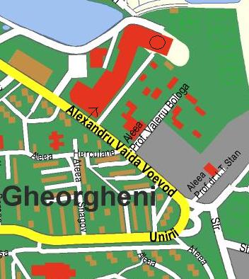 Clădirea roşie mare e Iulius. Săgeata e spre parcarea supraterană. Urcarea în parcare e chiar după un drum de lângă Iulius (acela e ieşirea din parcare). Cercul e locul de întâlnire (chiar în capătul parcării).