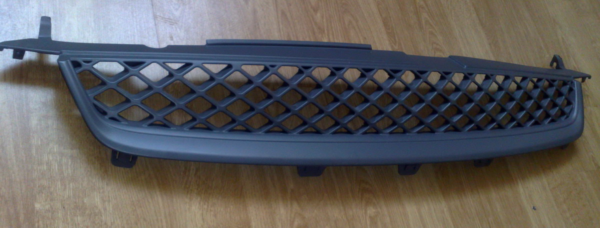 grila are la baza una normala, modificata de mine prin scoaterea emblemei, complectarea golului ramas cu material dintr-o alta grila, chituire si vopsire.