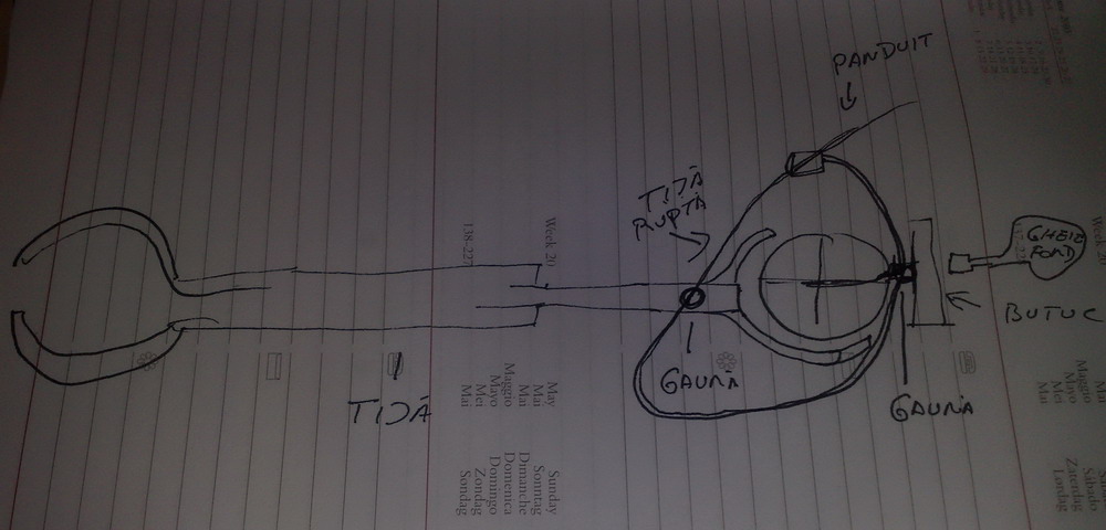 oricum ideea este ca se dau 2 gauri cu un spiral subtire, una in spatele tijei in partea cu ruptura, cealalta intre nuca rotunda (din plastic negru care are 2 santuri perpendiculare pe ea, santuri pe care intra una din furcile tijei si furca butucului) si butuc. prin aceste 2 gauri se intoduce un panduit si se strange pana ce furca rupta de la tija se fixeaza bine pe santurile nucii.