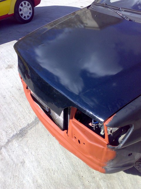 Salut! Am tot promis pe ici pe colo ca am sa-mi pun si eu poze cu masina asa ca a venit momentul sa ma si tin de cuvant si sa o si prezint :))... Mi-am cumparat anul trecut un Ford Fiesta Mk3, coupe, negru, din 1990, motor 1800cmc, 44kw/60 cp, motor tip RTC. Am cumparat-o de la unu care o vindea k cik o luase pentru gagicasa (femeia arata traznet :O) si k nu ii mai place prietenei k ea vrea audi a4 :| cred si eu la cum arata k n-ar fi condus o masina k asta mai ales in conditia in care am luat-o eu: instalatie electrica partial functionala :)), cauciucuri aproape de slick-uri, de volan trebuia sa tragi cu ale tale 2 maini si daca mai aveai pe cineva in dreapta ii cereai si lui 2 maini de ajutor :)), capota vopsita negru mat de proprietar cik tuning domne :> proiectoarele puse doar la misto caci nu era niciun fir tras la ele, electroventilator manual :)) pentru racire motor, haion mancat de rugina, pus scotch si vopsit peste k sa nu se vada :))... si multe alte defectiuni tehnice care la prima vedere nu s-au vazut plus k eram super incantat ca am dat doar 30 mil pe ea :)).... Iata cum arata la inceput :>