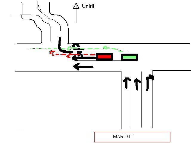 Acolo lipsesc alte indicatoare (e posibil sa exista unul cu configuratie celor trei benzi, dar sa nu il fi prins eu, sa fie chiar acolo unde am facut stanga dinspre Mariott), deci marcajele devin cele mai importante in cazul asta.