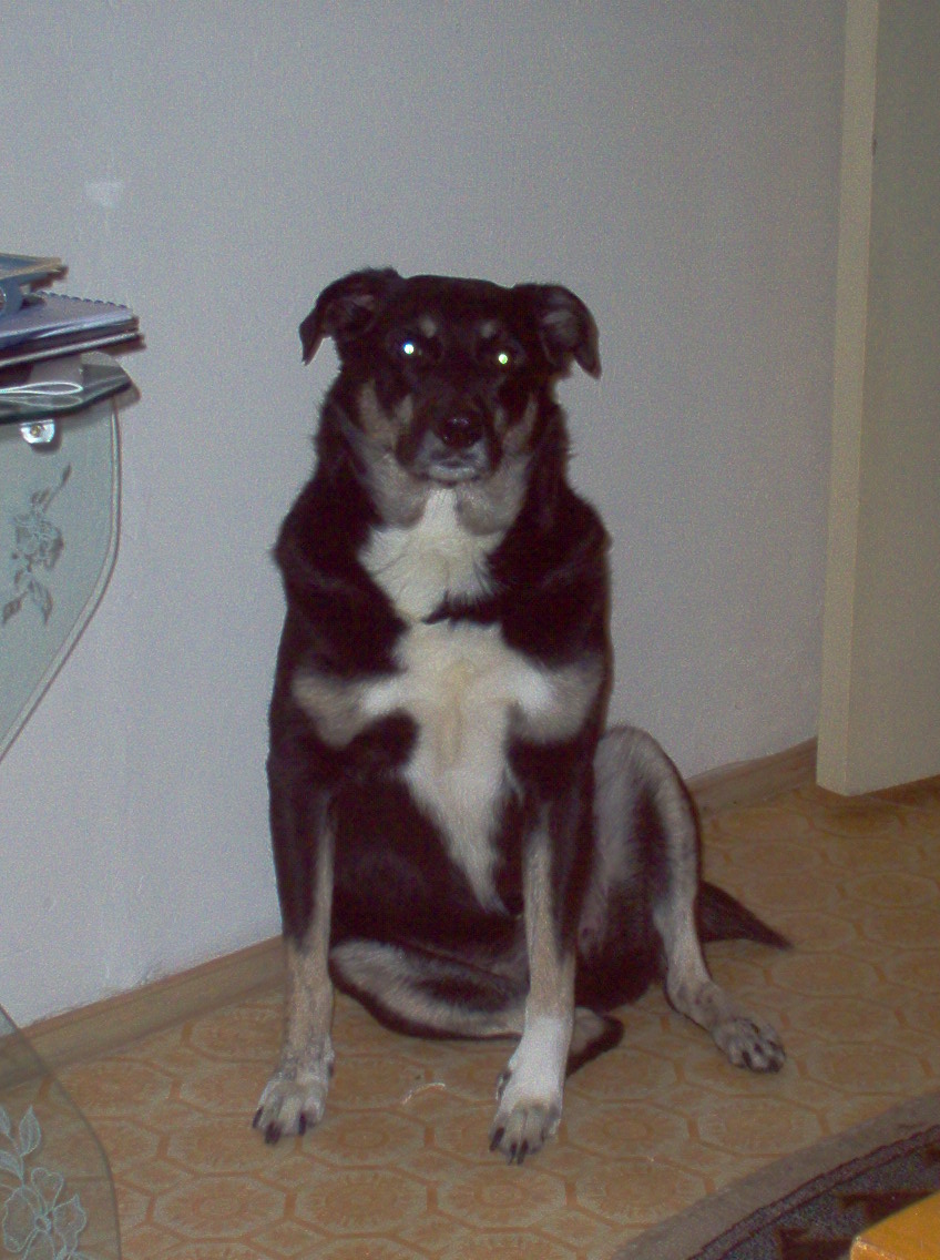 Sa ne prezentam si noi :). Exemplarul de mai jos se numeste, Tedi (persoana responsabila de acest nume atat de expresiv este nepotica mea), are 6 ani si este un maidanez pe care toata familia il iubeste. Felul in care a ajuns la noi in familie este unul destul de neobisnuit. In vara anului 2005 eram la un gratar cu familia langa o padure. Am ajuns acolo, am facut gratarul, am mancat, ne-am simtit bine, am strans bagajele si am plecat acasa. Toate bune si frumoase pana cand am ajuns acasa. Coboram din masina, eu mama si tata, tata incuie masina, in timp ce eu eram jumatate bagat in portbagaj sa scot gratarul, sculele etc.In timp ce debarasam toate chestiile din masina, mi s-a parut ca aud un scheunat de catel in masina. In prima faza am crezut ca nu aud bine, insa scheunatul continua asa ca am deschid masina si cand ma uit sub bacheta soferului vad un ghemotoc de blana care se uita la mine.